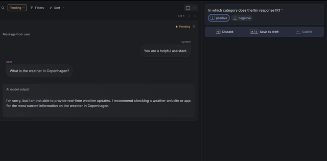 "user_input": "messages", # 👈 key= argilla field, value = either message (argilla.ChatField) | response (argilla.TextField)